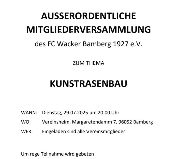 Herzliche Einladung an alle Mitglieder zur außerordentlichen Versammlung am 29.07.2025!