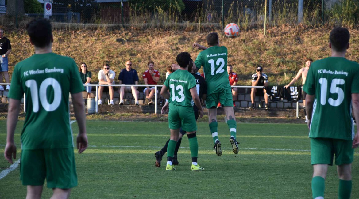 Den Bezirksligisten Phönix Buttenheim hat der Kreisklassist FC Wacker sofort überrascht, denn nach einem Einwurf war Tom Uphaus zielstrebig zur Stelle und erzielt schon in der ersten Minute das 1:0. Selbstsicher kurz danach der Flankenball vom sich außen durchgesetzten Uphaus in die Mitte, für den Pablo Barrionuevo nur die Fußspitze genügt hätte, um das schnelle zweite Tor zu erzielen. Dies ließen aber die Buttenheimer nicht auf sich sitzen, die mit schnellen Antritten und leichtfüßigem gekonntem Zusammenspiel den Weg nach vorn suchten und schwer zu bremsen waren. Der so angespielte ballgewandte Hutzler setzte sich rechts spielerisch durch und sein Zuspiel vollendete der frei in die Mitte stürmende Crittendon zum 1:1 (11. Min.). Die Gäste zeigten jetzt vermehrt ihre spielerische Klasse und ließen den Ball zielstrebig und sicher in ihren Reihen laufen. Der sich erneut außen gekonnt durchsetzende Hutzler stürmte im Alleingang auf das Tor von Wackerkeeper Bastian Kleis, dem er mit seinem Treffer zum 1:2 (25. Min.) das Nachsehen gab. Trotz der routinierteren Spielart und Ballführung der Buttenheimer hielt Wacker einsatzstark dagegen und verstand es auch selbst torgefährliche Chancen herauszuarbeiten, wie beim Schuss von Christopher Sünkel (30. Min.), der aber übers Gehäuse drosch. Den Ausgleich am Fuß hatte der Gastgeber in der 35. Min., als der Ball auf der Linie diese nicht überschritt und gerade noch weggeschlagen wurde. Kurz vor dem Seitenwechsel versuchte es Hutzler noch mit einem Schuss zum Führungsausbau knapp über die Latte (43.) und auch der hervorragende Pass von Sünkel zu Gregor Hetzel wollte einfach nicht den Ausgleich erzwingen. Mit gutem Stellungsspiel und immer anspielbarbereit drängte der Bezirksligist die Heimmannschaft zu verstärktem Abwehrkampf, womit nach schnellem Angriffsspiel das Zuspiel zu Karmann führte, der gekonnt auf 3:1 erhöhte (60. Min.). Unkonzentriert nach dem Anstoß führte der Ballverlust mit dem gleichen Spielzug der Phönixtruppe zum nachsetzenden Sawinsky, der schon eine Minute später das Spiel mit dem Treffer zum 1:4 (61. Min.) entschied. Trotzdem zeigte sich Wacker von seiner kämpferischen Seite und setzte jetzt selbst den Gegner bis zum Schluss unter Druck. Umstritten der spielerisch elegant in den Strafraum gestürmte Vorstoß von Khalid Belmouden, da der herbe Abwehrversuch vom Schiedsrichter nicht als Elfmeter gewertet wurde (70.). Der emsig bemühte abwehrsichere Fatih Yildirim legte dann gut zu Gregor Hetzel auf (83.), der aber die Möglichkeit verzog. Nach der Eroberung des Balles auf der linken Seite sprintete der spielfreudige Kilian Stapf Richtung Tor und schloss hervorragend mit dem Treffer zum 2:4 (89. Min.) ab. Am Ende eine schnelle und sehenswerte kampfstarke Partie, die zwar mit der gekonnteren Spielart von Buttenheim erwartungsmäßig verdient gewonnen wurde, aber durch das kampfbetonte und laufstarke Spiel von Wacker mit einigen gut herausgespielten Chancen durchaus Paroli geboten wurde und der Pokalkampf auch die Zuschauer mit Spannung erfreute.