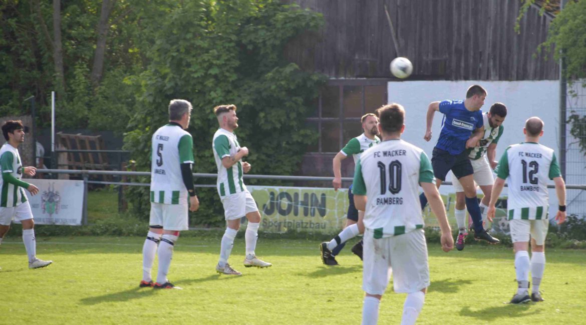 Die Wackerzweite wollte es auf jeden Fall besser machen als vorher die Erste. Dennoch mussten sie erst eine gute Chance der Bischberger Reserve hinnehmen, die die Hausherren aber daneben setzten. Der oft auf die Außenbahn geschickte schnelle David Schwab sprintete dann an der Abwehr vorbei, seine Flanke konnte Daniel Töwe jedoch nicht zielsicher unterbringen (9. Min.). Pech hatte auch der von Pablo Barrionuevo eingesetzte Gio Scalia, dessen Kopfball der Bischberger Schlussmann Gotthardt rettend ablenken konnte. Zielsicher danach der von Spielmacher Frank Grassl angepasste David Schwab, der dies zur frühen Wackerführung nutzen konnte (14. Min., 0:1). Obwohl die Bischberger ballsicherer agierten und die Wackerabwehr mit schnellen Kontern herausforderte, spielte der FC Wacker II effektiver und nach einem harten Schuss von Paul Buhl, erlangte Daniel Töwe den Abpraller und schoss postwendend treffsicher ins Bischberger Tor (41. Min., 0:2). Mit einem Freistoß vom spielstarken und einsatzfreudigen Stefan Kühl auf Pablo Barrionuevo, erzielte dieser gekonnt und eiskalt das 0:3 (50. Min.). Das Spiel war gegen die einsatzstarken Hausherren aber noch nicht entschieden, denn der sich auf der Außenbahn den Ball erkämpfende Bischberger Lang konnte dies zum baldigen Anschlusstreffer nutzen (53. Min., 1:3). Jetzt wurde es wieder spannend aber mit der sicheren und routinierten Abwehr um Felix Müller und Armin Sabzghabasoufiany mit Kühl blieb ruhig und ließ sich nicht überwinden. Gefährlicher jetzt dafür der torhungrige Wackersturm, der mit dem gezielten Pass zu Barrionuevo (65.) der Führungsausbau hätte sein können. Besser machte es der spielfreudige Stefan Breuer, der aus vollem Lauf zum 1:4 (75. Min.) einhämmerte. Jetzt war natürlich das Spiel für die Balu-Truppe gelaufen. Der eingewechselte Pit Schmidt brachte nach einem zugespielten Konter mit einem wahrhaft artistischen Trick sich selbst eine sichere Tormöglichkeit, vergaß ab vor Freude einzuschieben (88. Min.). Dafür sorgte er mit seinem Zuspiel zu Simon Zwosta für einen sehenswerten Spielzug, der zu Benjamin Loges weiterprallte und dieser zum 1:5 einschoss (90.+1 Min.). Zum Abschluss nahm sich der schussstarke Simon Zwosta einen Adrenalinschub und schoss einen abgewehrten Ball direkt hart in die Maschen (90.+3 Min., 1:6). Ein erfreulich hoher Auswärtssieg durch das konsequente Ausnutzen der sich ergebenden Chancen.