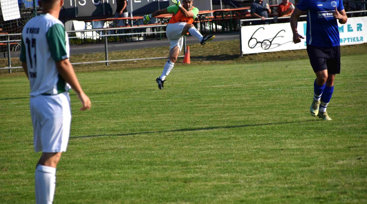 Die heißen Temperaturen störten der Wacker-Zweiten bei FC Bischberg II anscheinend nicht, denn nach dem ersten Anlauf der Hausherren, die sich gegen die Schnelligkeit von Armin Sabzghabasoufiany nicht durchsetzen konnten legte Wacker furios los. Einen abgefangenen Ball nahm Roland Tornau auf und zielte aus 18 m genau über den Bischberger Keeper Gotthardt ins Netz (8. Min., 0:1). Dies machte Mut zu mehr und mit schnellem Nachsetzen luchste Stefan Kühl dem Heimkeeper den Ball ab und schob ihn ins Tor (13. Min., 0:2). Bischberg versuchte nun dagegenzuhalten und versuchte es mit einem 20-m-Schuss (16.), den aber Wackertorhüter Mustafa Bünül routiniert abwehrte. Beherzt versuchte es dann Jörg Rührer (20.), konnte aber Torhüter Gotthardt nicht überwinden. Die sich zur Wehr setzende Heimmannschaft hatte sofort mit einem Gegenzug eine Möglichkeit, verzog aber knapp neben das Tor. Mit einem harten Freistoß zwang der gekonnt sicher aufspielende Felix Müller den Ball als Abpraller abzuwehren, den sich Martin Loy sicherte und volley ins Tor knallte und damit nach 23 Minuten (0:3) schon für eine schnelle und fast sichere Führung sorgte. Beim Wacker lief der Ball sicher und zielstrebig durch die eigenen Reihen und ließ den Gastgeber erst gar nicht ins Spiel kommen. So konnte der schnelle Stefan Kühl seinen Angreifern entkommen und Daniel Töwe anspielen, der mit dem routiniertem Abschluss das Ergebnis erhöhte (31. Min., 0:4) und kurz darauf mit einem Pfostenschuss haderte. Dafür brachte ein Ballgewinn von Kühl, den er dem sich perfekt durchwindenden Daniel Töwe zuspielte mit dem finalen Zuspiel zu Roland Tornau, der cool mit seinem 2. Treffer auf 0:5 (42. Min.) erhöhte. Während es bei der Gastmannschaft wie von alleine lief, blieb der Heimelf zwar der Versuch gut dagegen zu halten, was aber von der Wackerabwehr schon im Ansatz zerstört wurde. Kühl war es auch, der unmittelbar vor dem Pausenpfiff mit einem gewonnenen Zweikampfball Lars Hoffmann nach vorne schickte, der sich gekonnt vorne durchsetzte und für den hohen 6:0-Halbzeitstand sorgte. Im Taumel zu unkonzentriert sah Wacker erst einmal zu, wie Bischberg II nach Wiederanpfiff losmarschierte und der erfahrene Torwart Mustafa Bünül mit 3 Supereinsätzen schnelle Gegentore verhinderte. Zusätzlich konnte sich der Heimstürmer Metzner (50.) sehenswert durchsetzen, schoss den Ball aber neben das Tor. Leichtfertig dann ein fehlerhaftes Zuspiel, das der Bischberger Wacker zum Sololauf nutzte und zum Gegentor einschoss (53. Min., 1:6). Mit diesem Ehrentreffer war aber auch schon der stürmische Gegendruck der Hausherren vorbei und die Wackerzweite spielte wieder Fußball, wenn auch nicht mehr mit dem Tordruck vor der Pause. Technisch versiert erarbeitete sich Töwe eine gute Schussbahn, scheiterte jedoch am Torpfosten (60. Min.). Auch der erfahrene Aydin Özilban versuchte sein Können mit einem Torschuss abzuschließen (73.), setzte aber zu hoch an. Während Bischberg mit seiner letzten Chance (75.) wieder am hervorragend im Tor stehenden Mustafa Bünül scheiterte, schaffte es Wacker in der zweiten Spielhälfte nicht Tore nachzulegen, auch wenn das Ergebnis schon spielsichernd zu Buche stand.