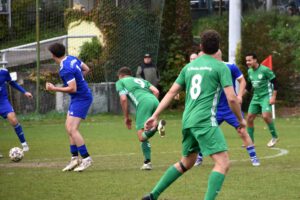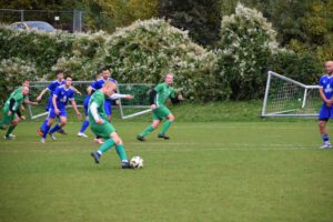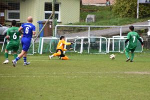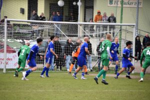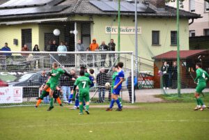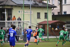 Die im noch ungesicherten Tabellenbereich spielenden Bischberger setzten von Beginn an auf Zweikampfeinsätze und versuchten das Wackerspiel sofort zu stören um mit vorgeschlagenen Bällen zum Erfolg zu kommen. Aufstellungsbedingt wieder mit einer umgestellten Wackermannschaft dauerte es einige Zeit bis sie sich auf die stürmischen Vorstöße der Bischberger eingestellt haben. Die bissigen Zweikämpfe, die dann beide Seiten für Ballgewinne eingingen, führten auch zu vielen Freistoßunterbrechungen, womit der Scharfschütze Finn Haferkamp mit seinem Freistoß knapp über die Abwehrmauer (18. Min.) das Tor verfehlte. Der bissige Bischberger Abwehrversuch im Strafraum an Gregor Hetzel wurde dann mit einem Elfmeter geahndet, den Haferkamp sicher zur 1:0-Wackerführung (28. Min.) verwandelte. Zwar führten die Körpereinsätze zu nur wenigen Tormöglichkeiten, doch nach dem scharfen Schuss von Köhler knapp über das Wackertor wurde der leichtfertige Vorspielversuch vom Gegner abgefangen und von Höder zum Ausgleich genutzt (42. Min., 1:1). Völlig von der Rolle nach dem abgefangenen Wiederanstoß die verschlafene Abwehr im Wackerstrafraum, die Hümmer dankbar nutzte und schon eine Minute später zur Bischberger 2:1-Führung einnetzte (43.). Somit wurde noch vor der Pause die verkrampfte statt überlegene Spielart selbstverschuldet bestraft.