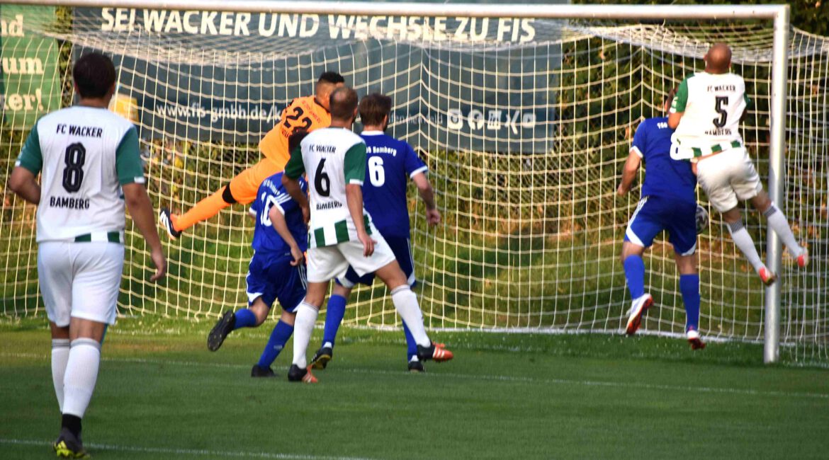 Die englischen Wochen ausgerechnet in der Ferien- und Urlaubszeit sind ein Dilemma für die Aufstellung der Wacker-Reserve. So liefen dankenswerter Weise 4 AH-Spieler im Stadtderby gegen die TSG 05 II auf. Trotzdem wieder ein Start zum Verzweifeln. Der erste Fehlpass in die Beine des TSG wurde dankenswert zum Sturmlauf genutzt und gegen die noch ungeordnete Heimelf zur sofortigen Führung durch Piacquadio in der ersten Spielminute genutzt. Bis Wacker II spieltechnisch und richtig positioniert am Geschehen aktiv teilnahm vergingen fast 20 Minuten. Trotzdem hatte das Vater-Sohn-Gespann in einer Mannschaft, da Neuzugang Robin Tornau seinen Vater Roland Tornau passend anspielte, eine Möglichkeit herausgespielt (9. Min.), die aber neben dem Tor landete. Da die Gäste mit ihrer Startüberlegenheit nichts anzufangen wussten und Wacker nur zur Abwehr angriff ergab sich hier nur ein unproduktives Ballgeschiebe ohne erkennbare spielerische Linie. Erst mit dem gut in die Spitze zu Stefan Kühl gepassten Ball, der in fast freier Bahn das Tor verfehlte (18.), konnte der Hausherr immer besser das Geschehen kontrollieren, für das Matthias Döhnel und Manuel Tänzer im Mittelfeld die Führungsaufgaben übernahmen. Zusätzlich brachten die aushelfenden AH-Spieler mehr Sicherheit ins Spiel und sorgten für erhöhten Sturmdrang der Gastgeber. Zum Ausgleich fehlte allerdings noch das nötige Schussglück, denn Roland Tornau (25.) und der schussstarke Simon Zwosta (27. und 33. Min.) wurden vor dem Einschuss abgeblockt oder der oft weit vor dem Tor spielende TSG-Schlussmann Sonifi konnte die Bälle abfangen oder zur Ecke ablenken. Ein leichtfertiges Zuspiel führte kurz vor der Pause zu einem Pass auf den schnellen TSG-Außen Hean, der immer bei Kontern gefährlich nach vorne stieß, und hier Piacquadio anspielen konnte, der die Wackerbemühungen um den Ausgleich zunichte machte und mit seinem zweiten Treffer das Pausenergebnis auf 0:2 (45. Min.) erhöhte.