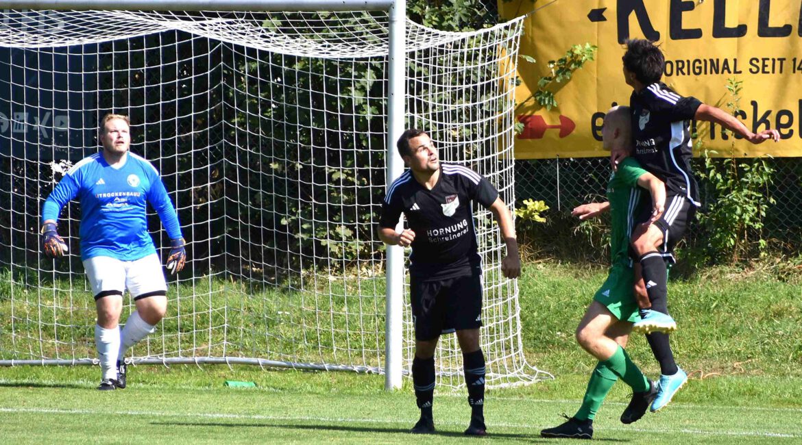 Nach dem Seitenwechsel versuchte die Heimmannschaft den Anschluss zu erzielen, konnte sich aber gegen die in dieser Saison sehr abwehrstarken Gäste nicht durchsetzen. Sie mussten sich sogar erst der Chance von Trunk von der linken Seite erwehren, die durch Torhüter Sebastian Kleis großartig gemeistert wurde. Das Geschehen spielte sich weiter auf Freistöße wartend ab. Nachdem der Reckendorfer Baier mit seinem Kopfball knapp den Führungsausbau verfehlte, blies Wacker zum bedingungslosen Sturm und öffnete seine Abwehrreihe. Dies hätte Stößel beinahe zum Gästetreffer genutzt, verfehlte aber mit seinem Direktschuss das Wackertor, wobei Torhüter Kleis kurz darauf auch noch einen Alleingang mit Fußbabwehr auszubremsen verstand (85.). Torerfolge sind sichtlich heuer nicht die Stärke der Gastgeber, denn auch der Freistoß von Finn Haferkamp (87.) krachte genau an die Latte und der Nachschussversuch wurde einfach nicht zählbar genutzt. So genügten zwei Kopfballtore nach Freistößen von Spielertrainer Wolfschmidt um die Punkte wieder ohne Gegentor mit nach Hause zu nehmen.