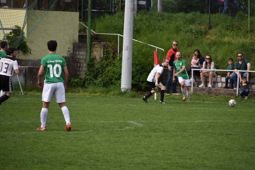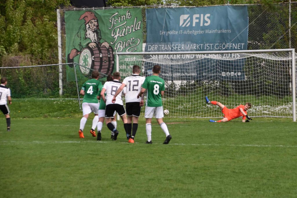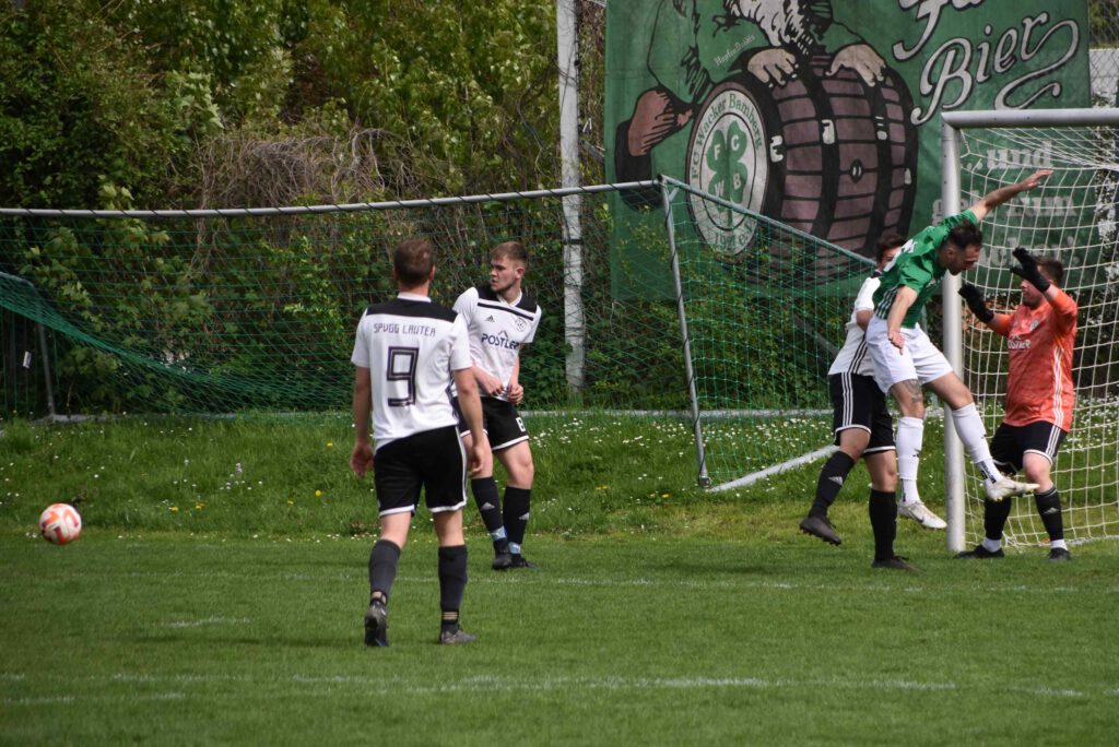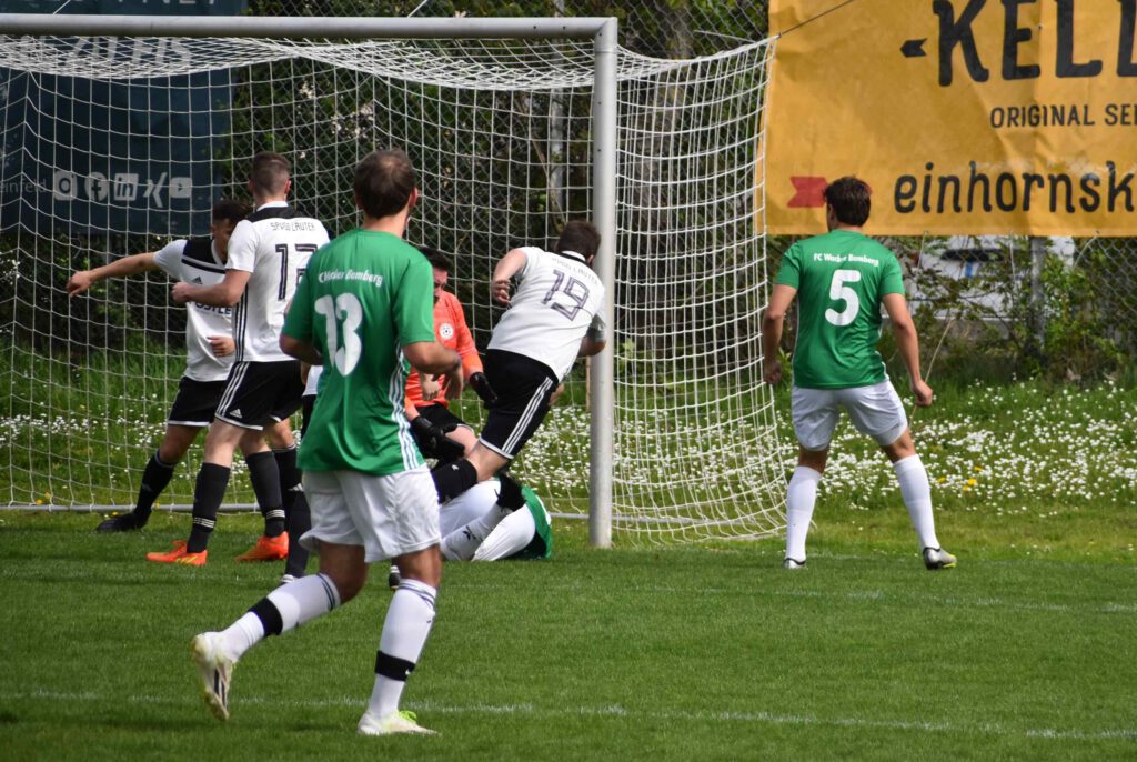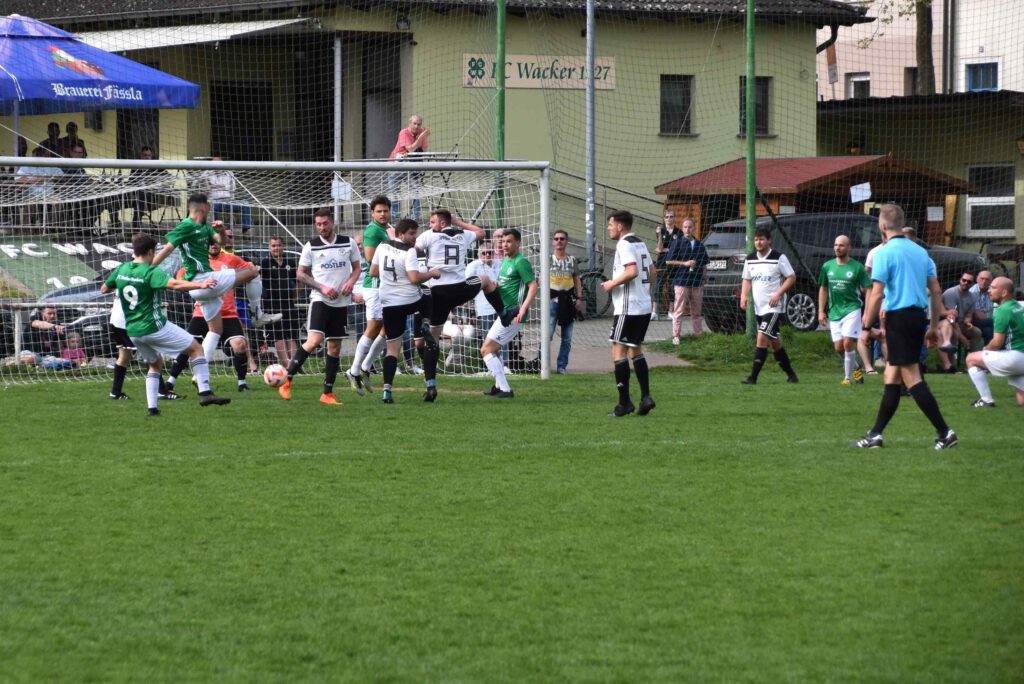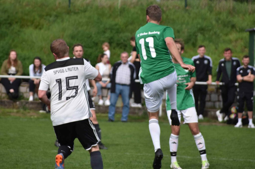 Gegen die noch nicht gesicherte SpVgg Lauter begann Wacker erwartungsgemäß mit mehr Elan und erspielte sich über Timo Renk und Max Jerabek auch gleich zwei torgefährliche Situationen. Sehenswert dann der Spielzug bis in den Lauterer Strafraum (10. Min.), der aber noch zur Ecke abgewehrt werden konnte. Die Hausherren drängten die Gäste in die eigene Hälfte, die aber massiv jeden Abschluss zu verhindern verstanden. Erst nach Vorarbeit von Max Jerabek und einem abgefangenen Verteidigungsabpraller konnte sich Gregor Hetzel reaktionsschnell durchsetzen und das überfällige 1:0 (20. Min.) erzielen. Mit der weiter nach vorn orientierten Spielweise drängte Wacker vehement auf das zweite Tor. Max Böhm versuchte im Strafraum eine Schussposition zu erspielen (25.) und der mit seiner spielerischen Schnelligkeit durchgebrochene Timo Renk (32.) scheiterten an der einsatzstarken Lauterer Abwehr, die jeweils zur Ecke abwehren konnten und diese gefahrlos überstanden. Das Zusammenspiel von Renk mit Jerabek und dem abschließenden Zuspiel auf Hetzel (35.) hätte locker den Führungsausbau bedeuten können; der Kopfball flog aber übers Gästetor. Mit einem langen Superpass von Max Berndl auf Gregor Hetzel auf der rechten Seite (40.) verwehrte der Heber über Torwart und Tor eine sichere Chance. Unmittelbar vor dem Halbzeitpfiff konnte noch der Lauterer Torhüter Hauptmann mit einer Blitzreaktion den Ball übers Tor bugsieren und den knappen Rückstand für sein Team retten. Auch in der zweiten Hälfte behielt Wacker den Druck aufrecht, auch wenn jetzt öfter auch die Lauterer mit Kontern sich Luft verschafften und die Wackerabwehr forderten. Der glücklose Abschluss auf Heimelfseite setzte sich aber fort, als kurz nach Wiederbeginn Hetzel und Jerabek nicht die Abwehr erfolgreich bezwingen konnten. Nicht viel fehlte dann beim Gegenzug über Lauterns Markus Schnitzer (55.), dem erst unmittelbar vor dem Einschuss ein Abwehrbein im Weg stand. Das Wackerteam blieb an diesem Tag weiter beim Abschluss ohne Fortune, denn auch Christoph Tippelt (57.) und Khalid Belmouden (68.) fanden nach guten Zuspielen einfach nicht den Weg ins Tor oder verpassten das Zuspiel im Strafraum (72.). Immer öfter versuchten jetzt auch die Gäste mit Gegendruck und verstärktem kämpferischen Einsatz zum Ausgleich zu kommen. Eine Superchance dazu bekam nach einem zur Ecke abgewehrten Konter Lauterns Lang mit seinem Kopfball (65.), den der Bamberger Torhüter Patrick Lehner nur mit einer Glanzreaktion übers Tor lenken konnte. Nachdem die verzweifelten Bemühungen von Belmouden und nach Jerabek-Vorarbeit für Renk scheiterten oder von Torhüter Hauptmann entschärft wurden (72. und 85. Min.)., rächte sich nach alter Fußballweisheit das Auslassen der vielen Möglichkeiten, denn beim Durchzug von Markus Schnitzer in den Strafraum wurde das Eingrätschen vom guten aber beidseitig kleinlich pfeifenden Schiedsrichter mit Strafstoß geahndet, den Schnitzer selbst zum 1:1-Ausgleich verwandelte (86. Min.). Trotz der Schlusshektik blieb es bei diesem Ergebnis und beide Seiten mussten sich letztendlich mit dem Unentschieden zufrieden geben, wobei dieHeimelf aufgrund der gebotenen und verschenkten Möglichkeiten mit Sicherheit mehr enttäuscht war. Es spielten: Patrick Lehner, Timo Renk, Leo Graf, Max Berndl, Felix Kraus, Max Böhm, Christoph Tippelt, Gregor Hetzel, Tobias Kuttler, Max Jerabek, Marco Rießland – Alexander Gebele, Khalid Belmouden, Tizian Hetterich, Sebastian Kleis, Kim Noah Thau