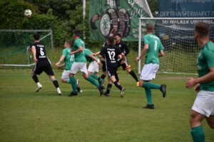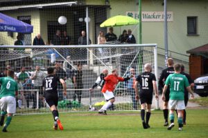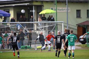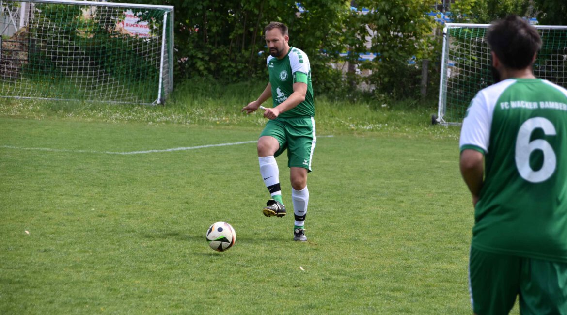 Zum letzten Saisonspiel empfing der FC Wacker den SV Zapfendorf, der noch gegen einen der möglichen Abstiegsplätze kämpfte, während beim FC Wacker die Entscheidung um die Plätze 5 bis 9 möglich war. Wacker suchte sofort den Weg nach vorne und Timo Renk hatte im Nachschuss die Führung auf dem Fuß (5.), den aber der sichere Zapfendorfer Torhüter Gunzelmann abzuwehren verstand. Exakter nach einem Freistoß von F. Böhm, den H. Böhm per Kopfball zum frühen Zapfendorfer Führungstor nutzte (8. Min., 0:1). Das hatte allerdings nicht lange Bestand, denn den Eckball von Finn Haferkamp nutzte Torjäger Gregor Hetzel per Kopfball zum Ausgleich (11. Min., 1:1). Wacker bestätigte mit gutem Einsatz und Zusammenspiel seine erfolgreiche Serie und kam auch zu möglichen Chancen wie von Marco Rießland (19.) und der von Haferkamp gezielt geschickte Max Jerabek (22.), der erst im 16er abgeblockt wurde. Auch der SV Zapfendorf sucht stets den Weg nach vorne, so dass eine abwechslungsreiche und wie schon in der Vorrunde umkämpfte Partie geboten war. Spannung kurz vor Halbzeit, als Finn Haferkamp mit mächtigem Schuss (43.) den Torpfosten erschütterte und sofort danach der lange und ballgewandte Gästestürmer Mirwald frei aufs Wackertor zulief, mit seiner guten Möglichkeit jedoch an Wackerkeeper Sebastian Kleis scheiterte, womit ausgeglichen die Seiten gewechselt wurden. Spielerisch bot jetzt der Gastgeber den vielen Zuschauern mehr Anteile, verstand es aber nicht seine Möglichkeiten konsequent zu nutzen. Das genaue Zuspiel des Wackerspielgestalters Marco Rießland zum freien Jerabek (49.), wurde vom SV-Keeper Gunzelmann genauso abgefangen wie der sehenswerte Fallrückzieher von Gregor Hetzel (60.), den er zur Ecke rettete. Die Hausherren konnten auch die Freistöße und Eckbälle nicht zu ihrem Vorteil nutzen. Selbst den super geschossenen Versuch von Christopher Sünkel konnte Gunzelmann mit einer überragenden Flugparade (68.) am Erfolg hindern. Erfolgreich dann doch noch in den jetzt nachlassenden Schlussminuten, als die Spielerstafette Rießland, Renk zu Hetzel dieser mit einem super Kopfball erst an die Latte und dann für das Blum-Team ins Tor köpfte (83. Min. 2:1). Das weckte vor allem bei den Gästen noch einmal alle Kräfte frei und Mirwald versuchte mit einigen gut angesetzten knappen Schüssen wieder zum Ausgleich zu gelangen. Dadurch musste auch Wacker wieder mehr Einsatz aufbringen und hätte durch den Abwehrversuch gegen den in den Strafraum sich spielenden Max Böhm durchaus auch eine angemessene Elfmeterentscheidung bedeuten können. Selbst in der Schlussminute musste der Zapfendorfer Torwart noch einen Schuss von Jerabek aus der unteren Torecke fischen. Mit diesem nicht unverdienten Sieg behielt der FC Wacker als Geschenk für den scheidenden Trainer Mirco Blum in diesem Jahr seine weiße Weste ohne Niederlage und schloss aufgrund des besseren Torverhältnisses mit der gleichen Punktzahl vor Unterleiterbach und Bischberg die Saison auf dem 5. Tabellenplatz ab.
