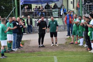 Schon vor dem Spiel ehrten die Spieler vom Wacker und dankbar auch die Zapfendorfer mit einer Ehrengasse den nach 9 Trainerjahren aufhörenden Mirco Blum mit überreichten Bildcollagen und nach dem  Spiel mir ehrenden Geschenken von der Vorstandschaft, seiner Mannschaft und vom Fanclub HofpenDoldi. Ebenso geehrt und der Dank des Vereins ausgesprochen wurde dem sein Amt als Spielleiter und Co-Trainer beendenden Matthias Schlagenhaft.  Nach dem Spiel folgte eine lang anhaltende gebührende Abschlussfeier auch für die den Verein wieder gen Heimat verlassenden Spieler Max Berndl, Max Jerabek, Sebastian Seger, Marco Rießland und dem aufhörenden Co-Trainer und Spielleiter Matthias Schlagenhaft, auch mit musikalischer Begleitung, vom Theo gegrillte Bratwürste und Steaks und bergeweise leckere Pizzen, die mit reichlich gekühlten Getränken genossen wurden.
