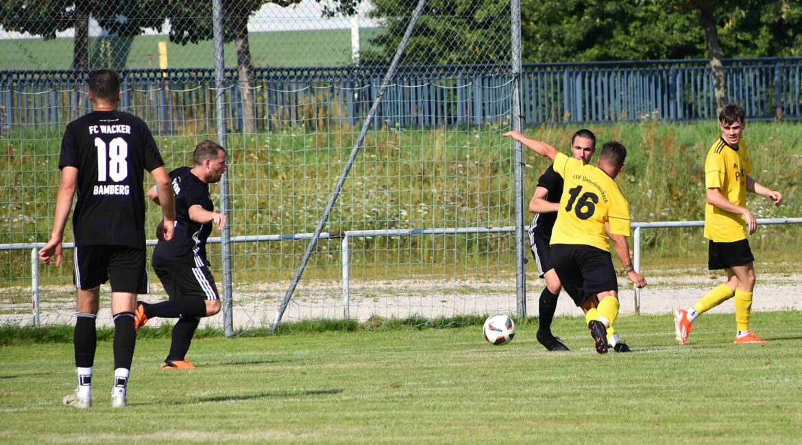 Beim FSV Unterleiterbach, der aus der Kreisliga abgestiegen ist, kam der FC Wacker mit dem Anpfiff zur ersten Torchance als Timo Renk rechts durchgebrochen war und in die Mitte zu Max Jerabek flankte. Die Abwehr wollte Gregor Hetzel in freier Schussbahn einschieben, hatte aber nicht den nötigen Druck um die schon sichere und sofortige Führung zu erzwingen. Während der FC Wacker es einige Male mit langen Bällen versuchte in die Spitze zu stoßen, die meist zu weit waren und stets Ballverlust bedeuteten, versuchten es die Unterleiterbacher viel über ihren schnellen Rechtsaußen Hetzel um die Wackerabwehr um den vielbeschäftigten und Sicherheit und Ruhe ausstrahlenden Maximilian Berndl zu überwinden, der mit Finn Haferkamp, Leo Graf und Rafael Muck eine sichere Abwehrreihe bildete. Der mit spielerisch sicherer Eleganz auch gern schnell nach vorn stoßende Finn Haferkamp konnte mit seinem Vorstoß (18.) eine Flanke in die Mitte schießen, bei der um Haaresbreite mit dem möglichen Kopfball die Führung verfehlt wurde. Mit dem Glück haderten auch die Gastgeber, die trotz spielerischer Überlegenheit des FC Wacker mit einem Kontervorstoß durch einen Pfostenschuss von Hornung die mögliche Führung vergaben. Artistisch dann nach Zuspiel von außen auf Max Jerabek, der den Ball in Kopfhöhe mit langem Bein angelte, in eine Schussbahn trippelte und aus der Drehung vom 16er knallhart Abwehr und Torhüter überraschte und sehenswert zur Wackerführung eindrosch (39. Min., 0:1). Einen sehr stark von Sebastian Dengler im Mittelfeld eroberten Ball passte er zu Jerabek, der zwar mit seinem Schuss am Unterleiterbacher Torhüter Förner scheiterte, für den Abpraller aber Timo Renk schnell zur Stelle war und noch vor dem Seitenwechsel dies erfolgreich zum 0:2 nutzen konnte (43. Min.). Gegen die jetzt intensiver den Anschluss suchenden Gastgeber wartete Wacker mit Ruhe und Geduld auf Kontermöglichkeiten, die zumeist über den schnellen Timo Renk auf der Außenbahn oder auch Gregor Hetzel vorgetragen wurden. Zwingende spielerische Torchancen wurden in der zweiten Hälfte nicht mehr herausgespielt, doch hätten Vorstöße wie in der 57. Min. auch erfolgreich für die Gäste enden können, der aber vom Heimtorwart Förner neben das Tor gelenkt wurde und der Eckball mit dem Kopf knapp verpasst wurde. Auch der bravourös mit Max Böhm im Mittelfeld leitende Sebastian Dengler kam in der 68. Min. nicht richtig zum Abschluss, was auch nach einem Gegenkonter der Unterleiterbacher Mannschaft nicht glückte (70), da Wackerkeeper Sebastian Kleis ein sicherer Rückhalt für sein Team war. Die Chance zum Führungsausbau ergab sich noch für Christoph Tippelt (76.), der aber am Torpfosten scheiterte. Gegen die heimische Schlussoffensive spulte Wacker nervenstark und ballsicher sein Abwehrverhalten über die Runden und beendete das Spiel damit auch verdient mit dem 0:2-Auswärtssieg.