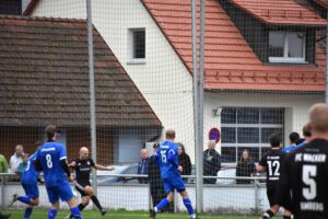 Zum Spitzenspiel der beiden Erstplatzierten in der Kreisklasse 1 musste der FC Wacker nach Kleukheim in den Kelbachgrund fahren. Wacker hatte zwar mit dem Eindringen in den TSV-Strafraum die erste gute Chance (8. Min.), verpasste aber den Einschuss. Die sofort aggressiver und ballsicherer spielenden Gastgeber zeigten ihre Torgefährlichkeit dann nach Einwurf, der aber übers Tor weitergeleitet wurde. Die druckvollere Spielart der von Spielertrainer Popp angetriebenen Hausherren konnte Wacker in der ersten Hälfte nur mit Kontern beantworten, die aber stets von der Verteidigung abgewehrt werden konnten. Der vermehrte Ballbesitz und bessere Spielfluss gegen zu schnelle Ballverluste der Gäste führte zu einem leichtfertig zugelassenen Sturmlauf von Kleukheim, der in der 30. Min. die 1:0-Führung durch Popp brachte. Trotz mehrheitlich mit der Abwehr beschäftigt wäre mit dem Freistoß von Finn Haferkamp (40.), der quer durch den Strafraum ging, fast der Ausgleich geglückt. Allerdings versäumten es auch die Gastgeber ihre Führung auszubauen, denn ein Konter unmittelbar vor dem Halbzeitpfiff endete an der Latte und auch der Nachschuss flog übers Tor. Wacker hätte sich bis dahin über einen 3:0-Rückstand nicht beschweren können.