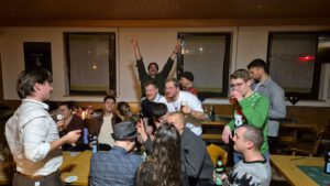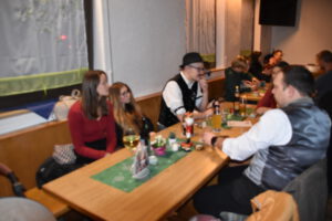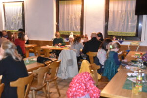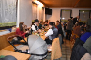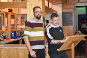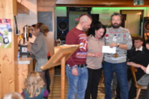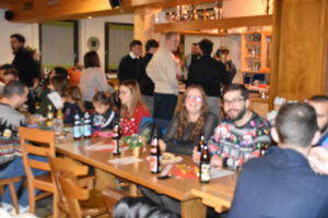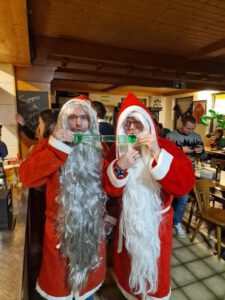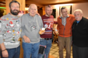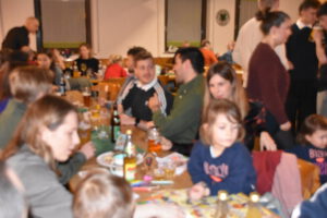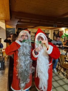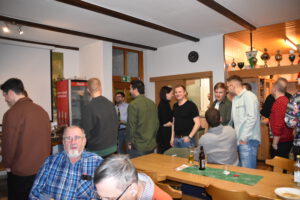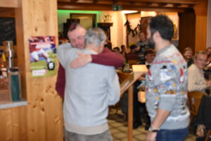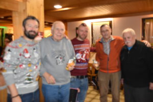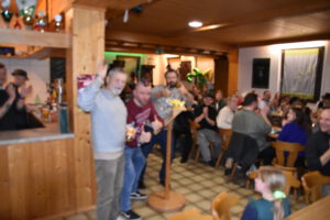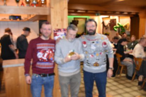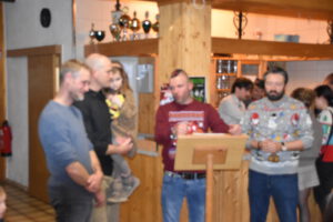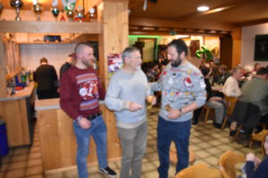 Als Nikolaus fungierten die Abgesandten Andre und Pit und lasen vielen Spielern die Liviten und lobten auch deren Engagement und übergaben auch den verdienten Helfern den Weihnachtsobulus. Um die Feier zum guten Gelingen zu verzaubern halfen fast die gesamten Teilnehmer zum Gelingen des Abend mit ihrem Beitrag dazu, vom Servieren bis zum Spülen und Aufräumen, einfach eine lobende Geste und Einstellung. Mit unbekanntem Ende wurde der Geselligkeit und dem zusammengehörendem Vereinsfrieden noch lange gefrönt und der Mut zur Durchführung der unerwarteten Weihnachtsfeier kräftig begossen am Schluss mit dem Wacker-Pit-Slogan „SIMMA HART – SIMMA WACKER GEFEIERT.