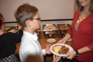 Zur emotionalen Stimmung trat Pit Schmidt und Martin Schuster als Moderatoren mit Andreas Rödel, Spieler der Ersten Mannschsdt und Pastor der freien evangelischen Gemeinde, mit seiner Gitarre zur Seite und bekleidete musikalisch die Weihnachtslieder. Da der FC Wacker spielerisch internationale Kontakte stets problemlos vorbildlich zusammenlebt wurde auch das Weihnachtslied Feliz Navidad in der Heimatsprache von Torhüter Diego angestimmt. In seiner stimmlichen Weihnachtsansprache, in der er sich Frieden auf der Welt wünschte, brachte er originell und schmunzelnd sinnbildlich mit ein, dass für das Christkind der Kunstrasen in der Krippe verdient angebracht gewesen wäre. Das Gedränge bei der Essenabholung störte nicht den geschmacklich ungeheuer verwöhnenden Genuss der fränkischen Spezialität. Pastor Rödel unterhielt bis zum Eintreffen des Nikolauspaares die Gesellschaft.
